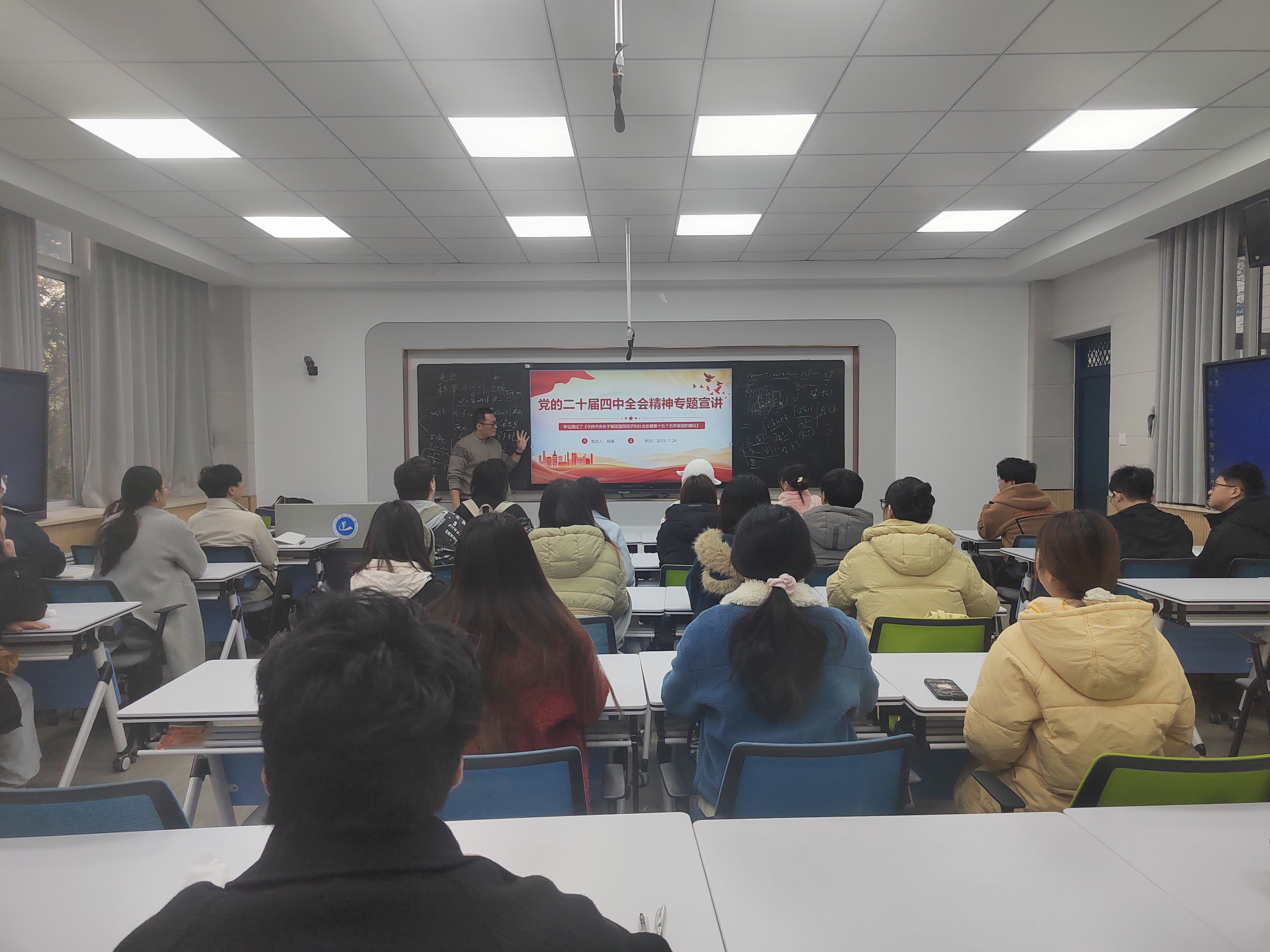宣讲会上,杨锋首先阐述了党的二十届四中全会的重要意义和核心要义,重点解读了全会关于坚持和完善中国特色社会主义制度、推进国家治理体系和治理能力现代化的一系列重大决策部署。他结合当前国家发展形势与战略需求,强调全会精神为新时代各项事业发展指明了方向、提供了根本遵循。